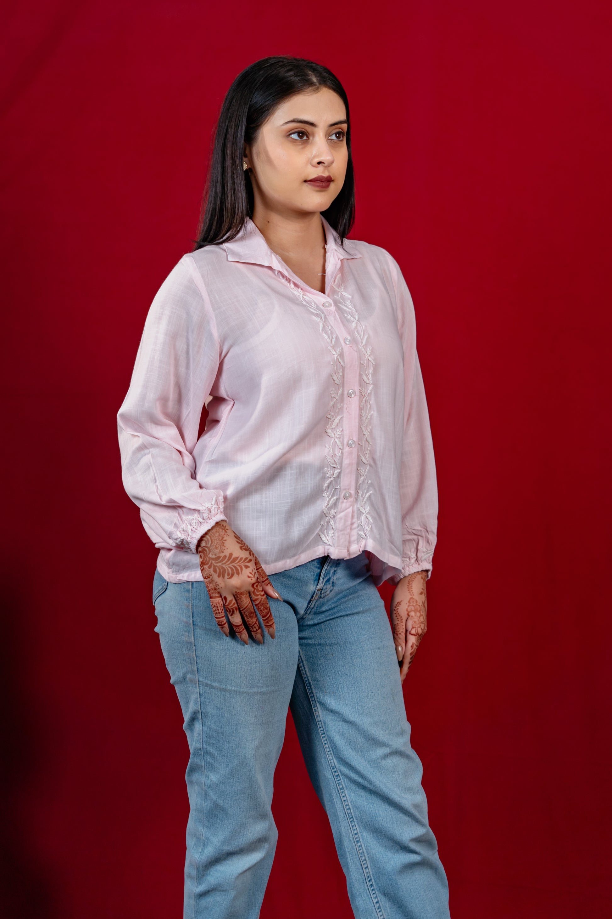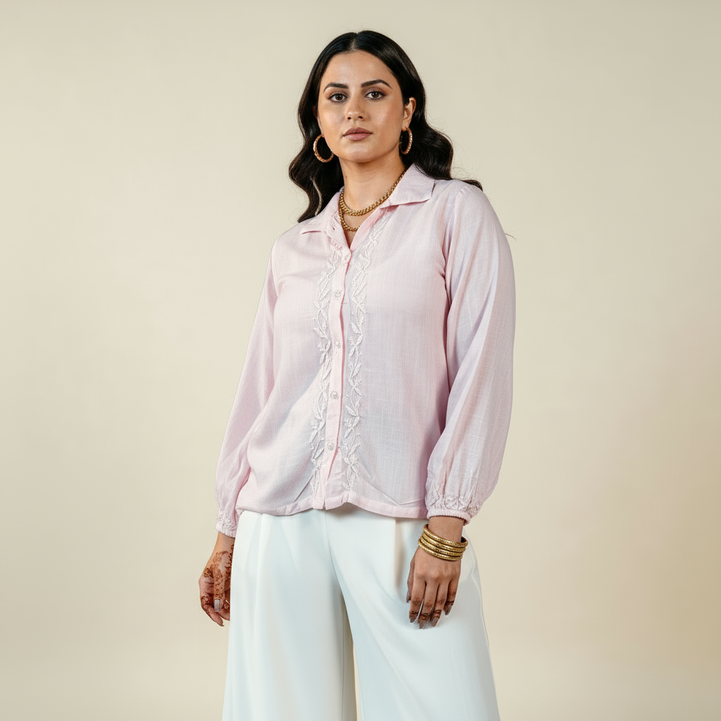 Nazakat Pink Chikankari Rayon Slub Shirt