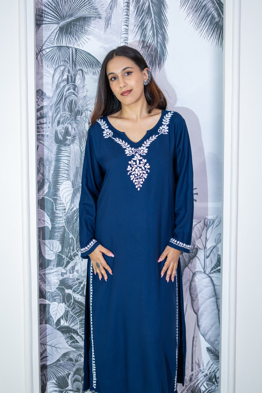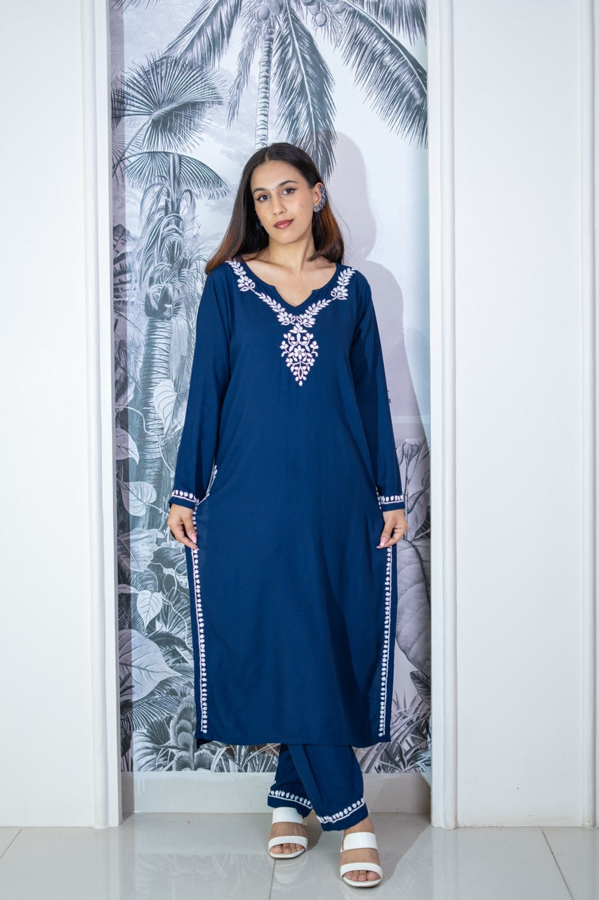Neelam Navy Blue Chikankari Rayon Co-ord Set